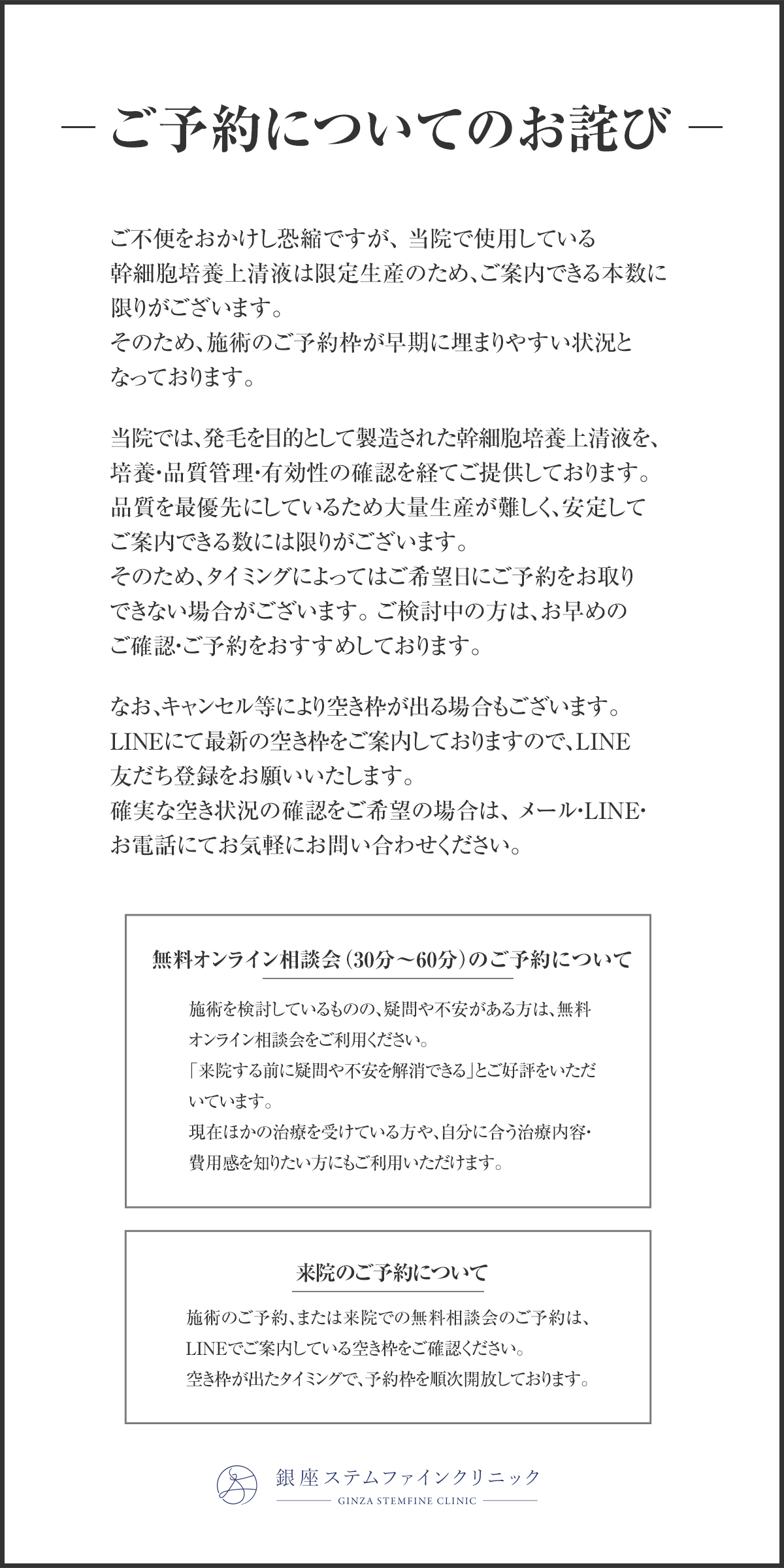 当院は国内のGMP準拠細胞培養加工施設で試薬として製造された培養上清を、医師の責任において患者様の同意のもとで使用しております。
