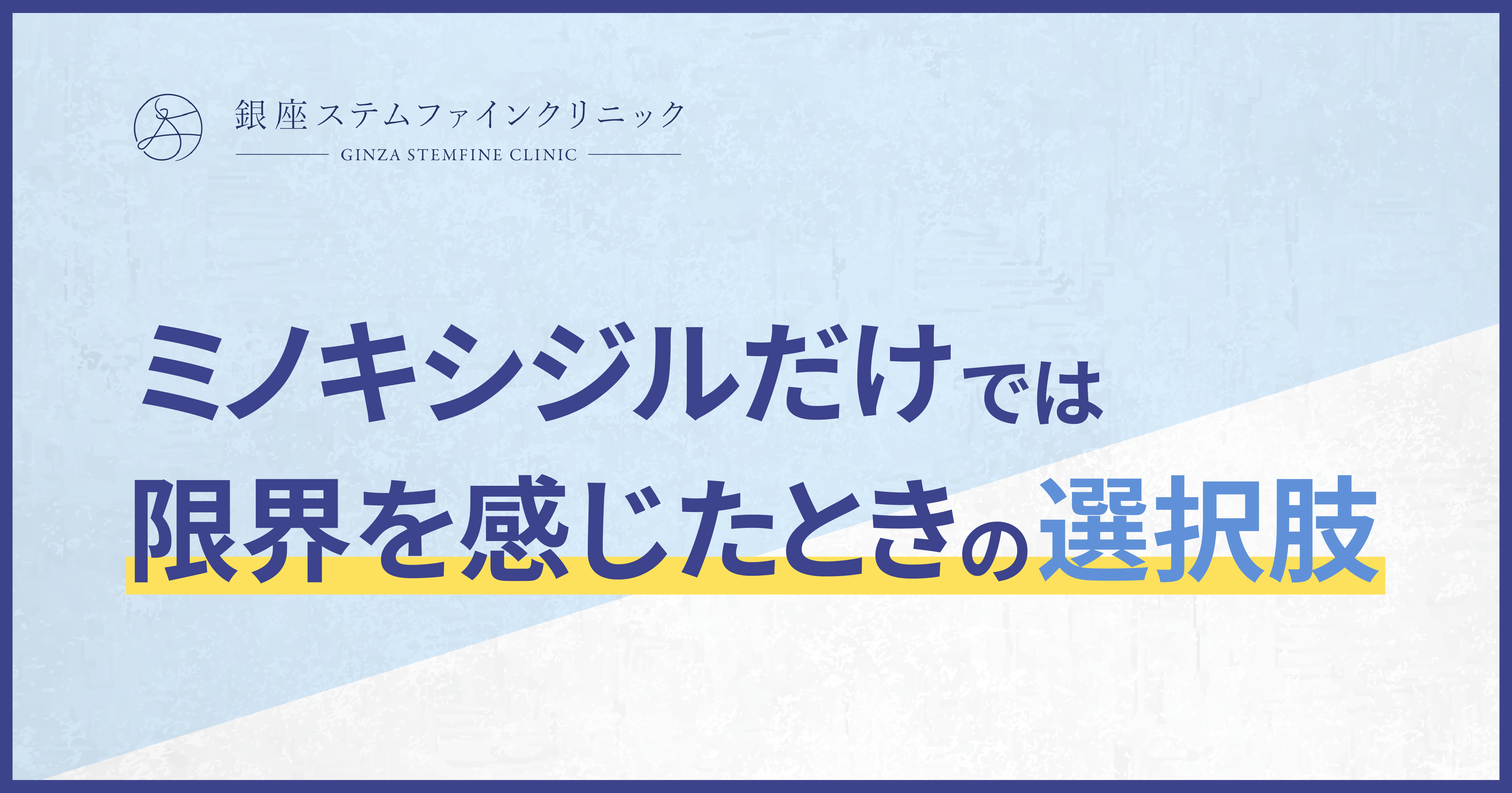 ミノキシジルだけで「これ以上はあまり変わらないかも」と感じたときは、治療をあきらめるタイミングではなく、治療の組み合わせを見直すタイミングと考えるのがおすすめです。