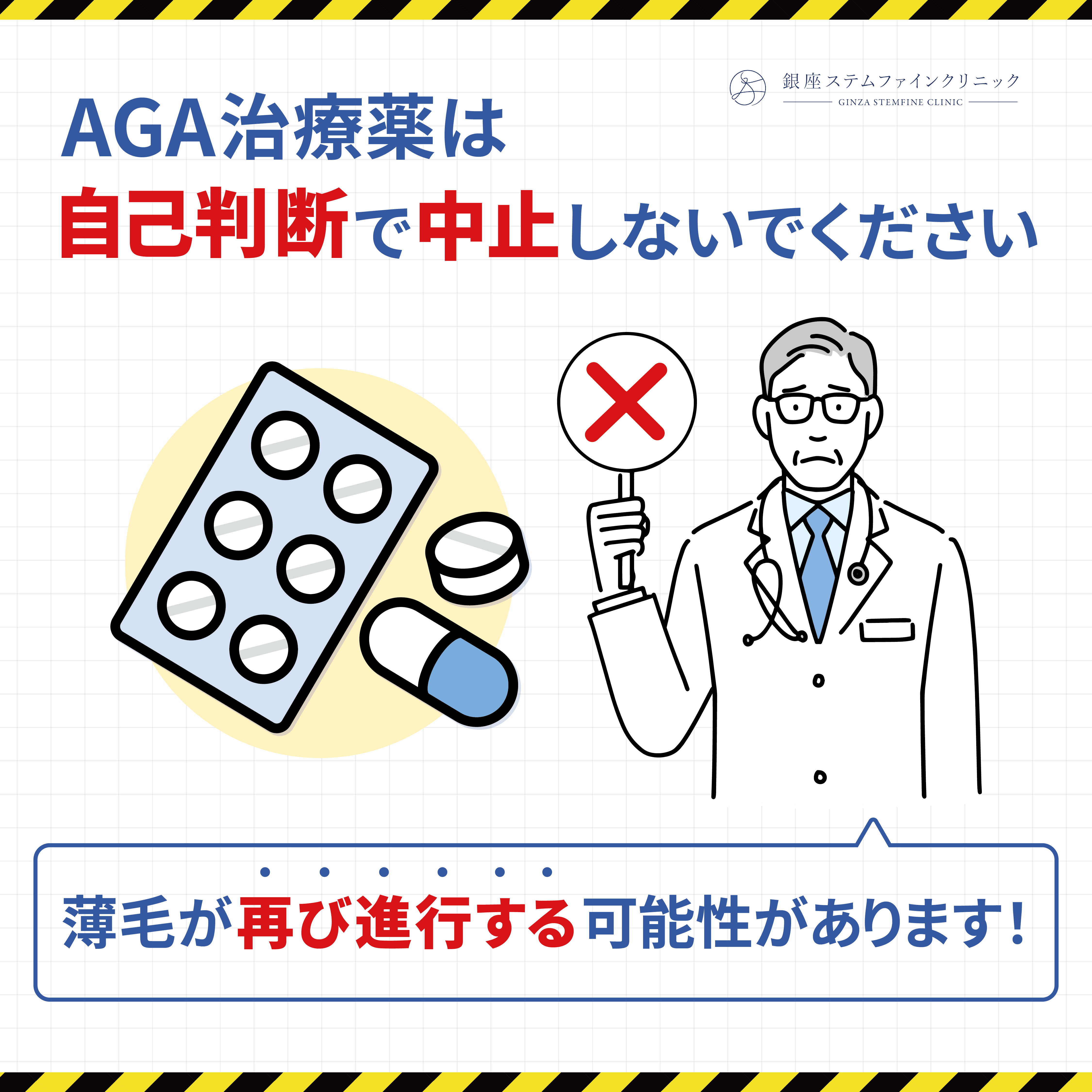 AGA治療薬は、血中濃度とホルモンバランスの変化によって効果が維持されているため、いきなり「今日でやめる」と中止すると、DHTが急激に増え、抜け毛が一気に再開するリスクがあります。