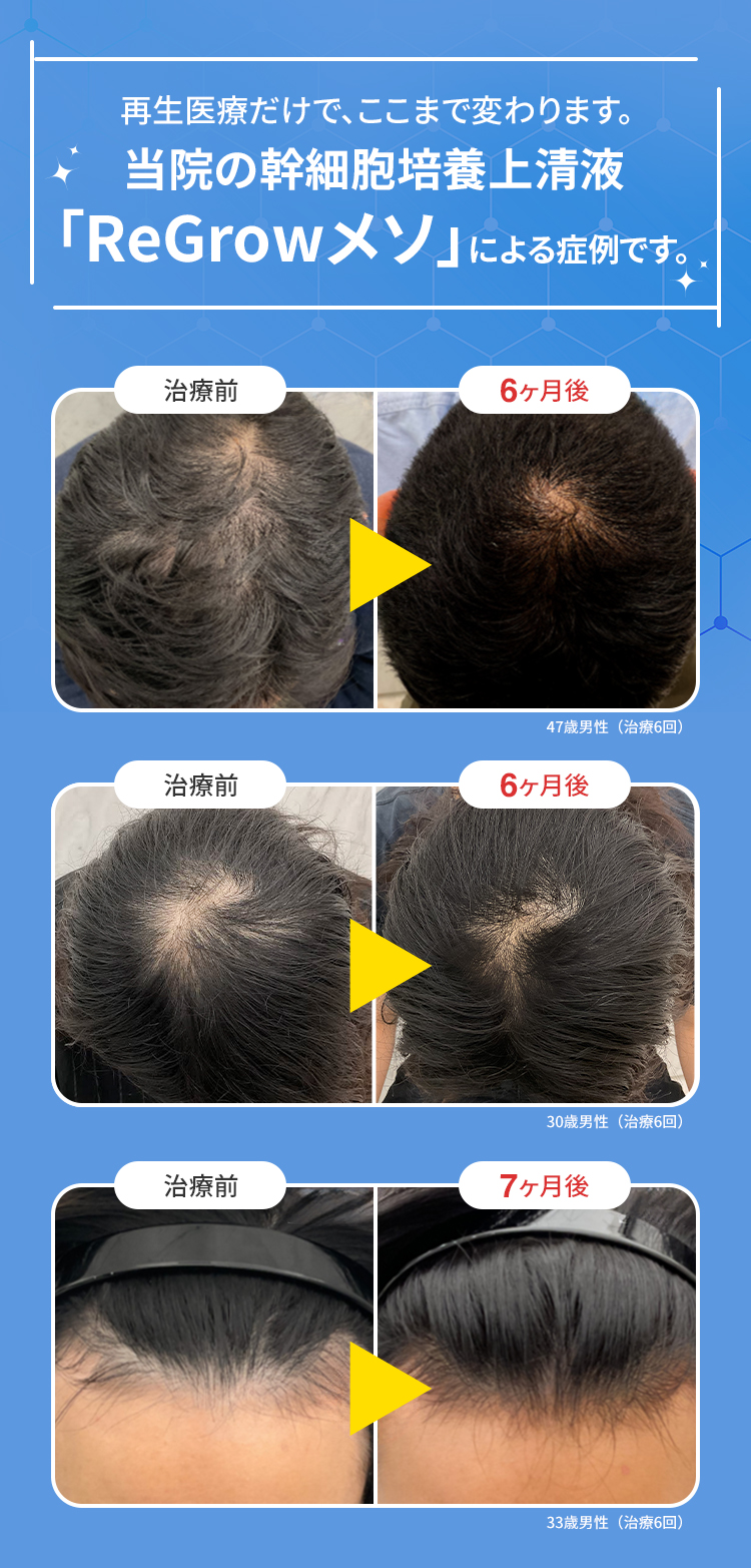毛髪再生は、どんな成分を使い、どのように設計して打つかで成功率が大きく変わる治療ですので、まずはお気軽に当院までご相談ください。