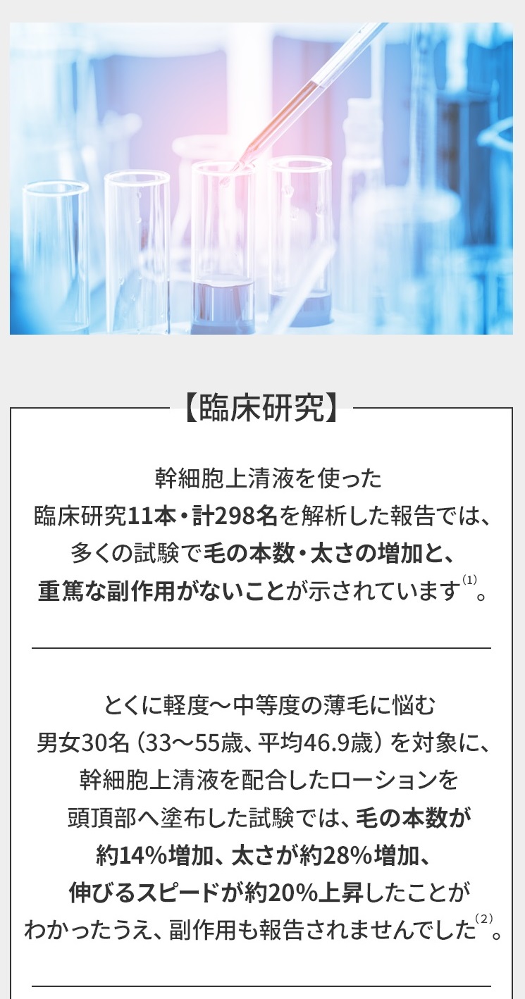 結果につながることにこだわった、発毛特化の幹細胞培養上清液を使用