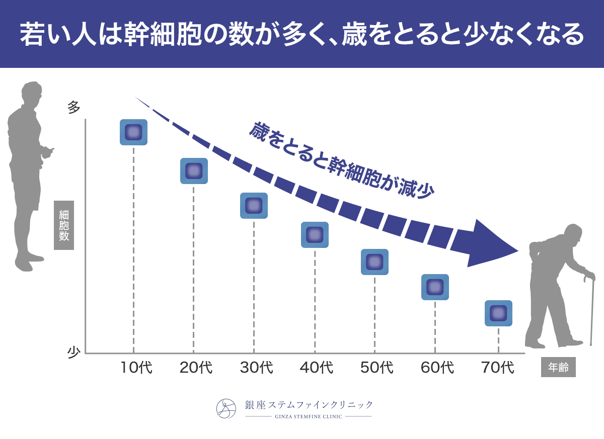 ところが、加齢やホルモンバランスの変化、血流低下、ストレスなどの影響を受ると、これらの幹細胞の働きは少しずつ低下していきます。