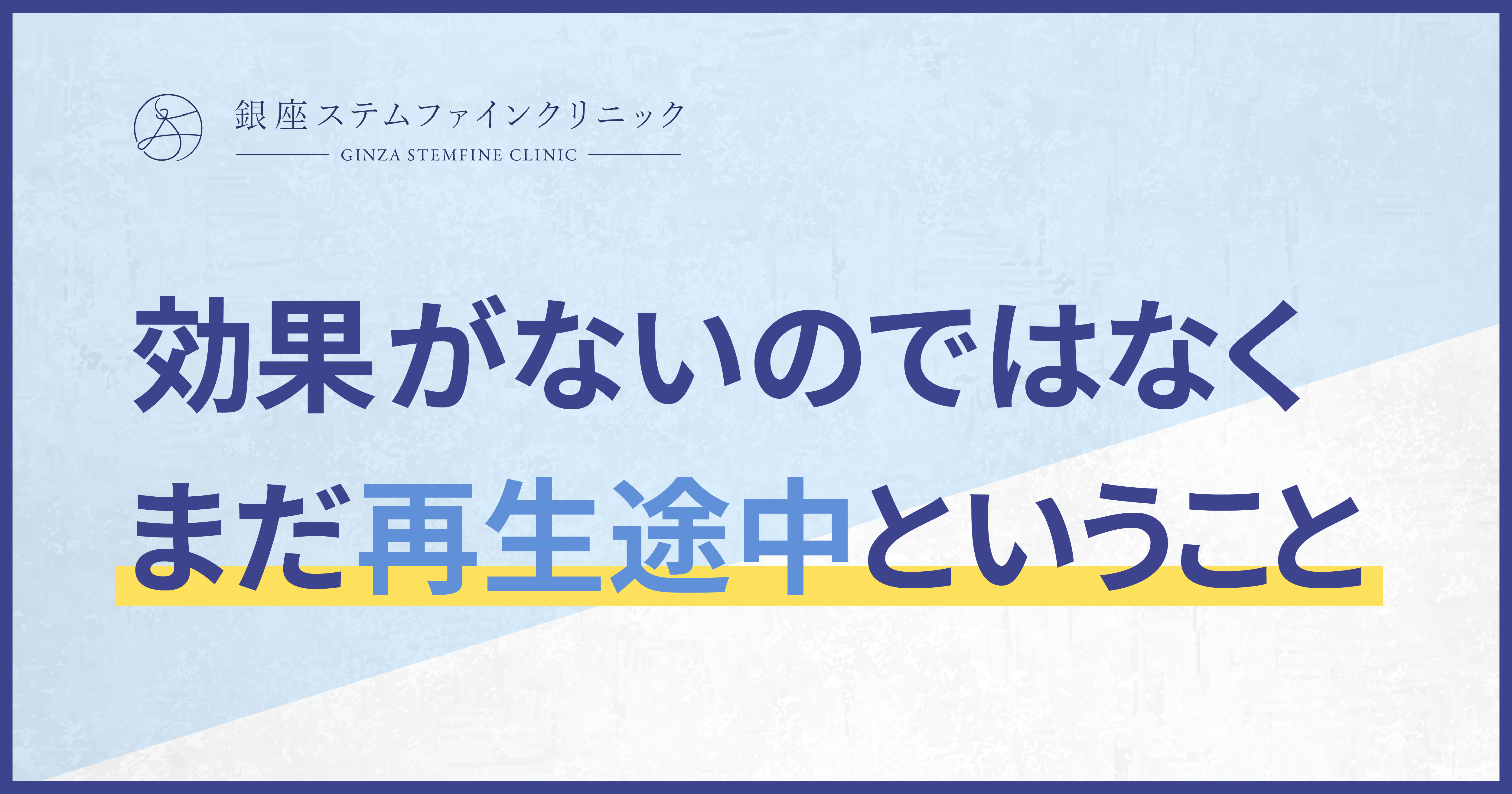 そのため、治療開始から数ヶ月の段階では、「まだ変わらない=効果がない」と感じてしまいがちですが、実際にはまさに今、細胞が立ち上がっている途中ということも多いのです。