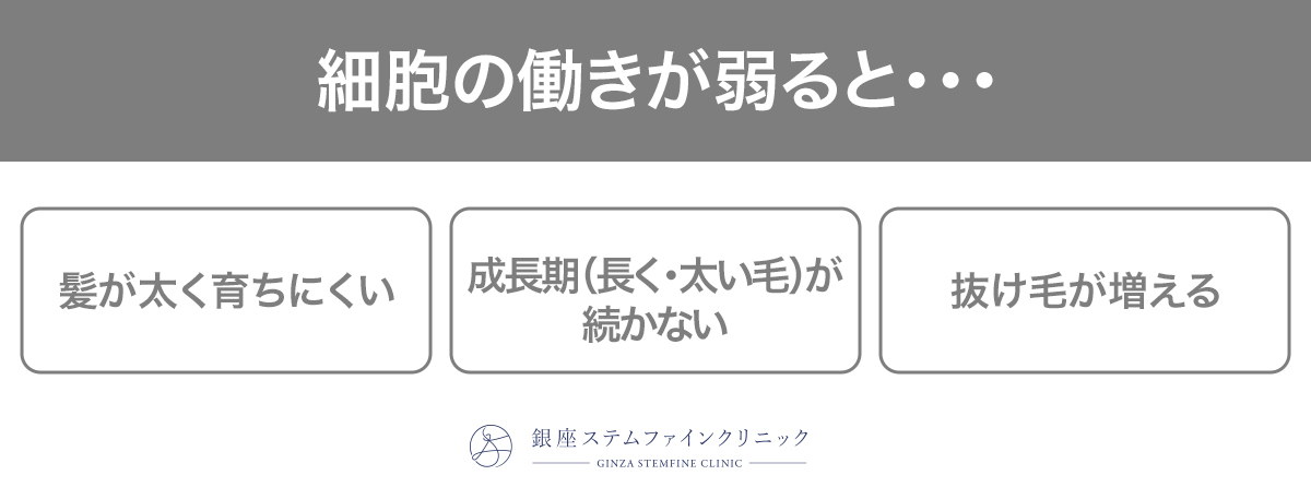 使い方も生活習慣も問題ないのに変化がゆっくりな場合、髪を生み出す細胞そのものの働きが弱っている可能性があります。