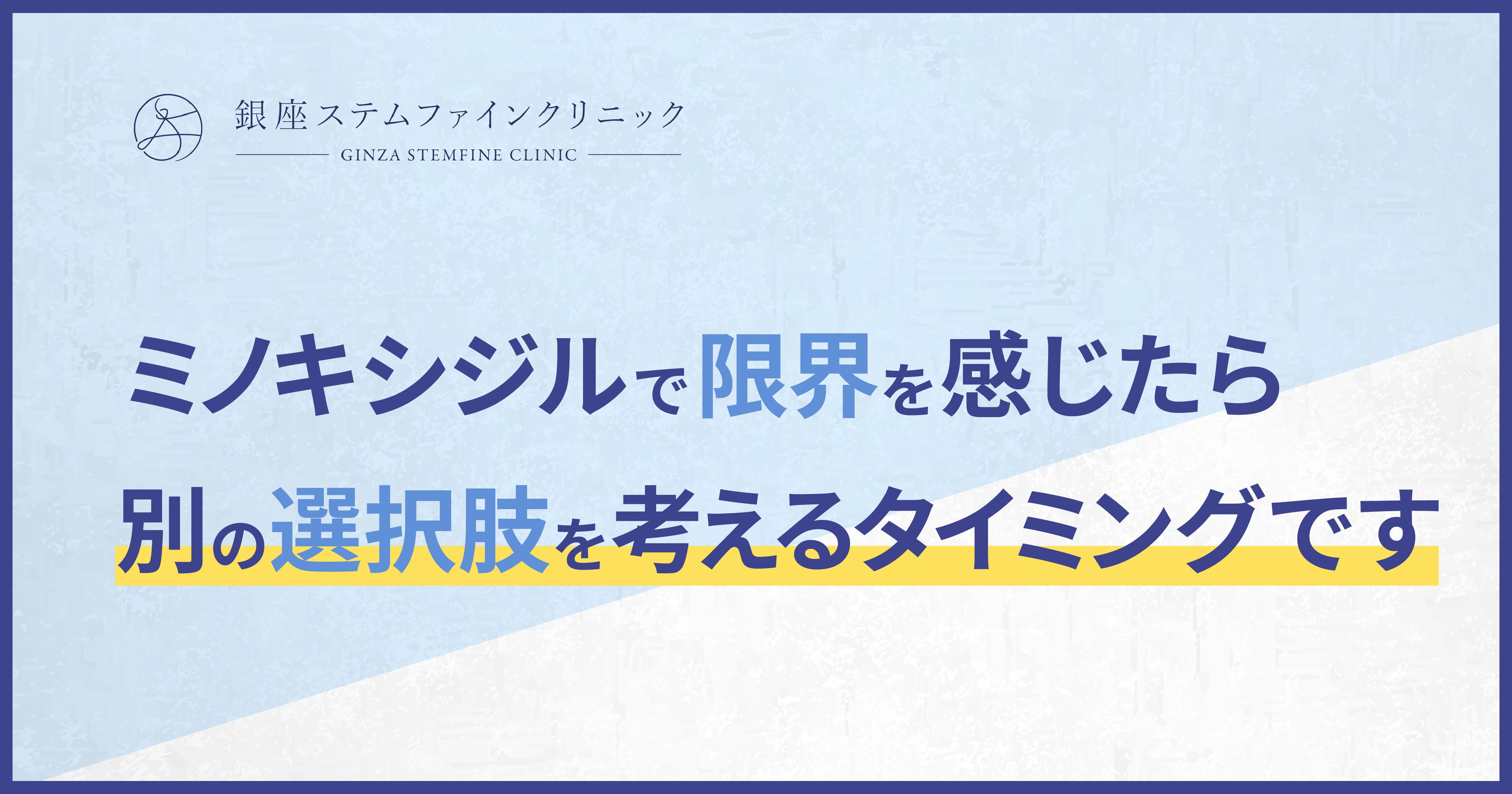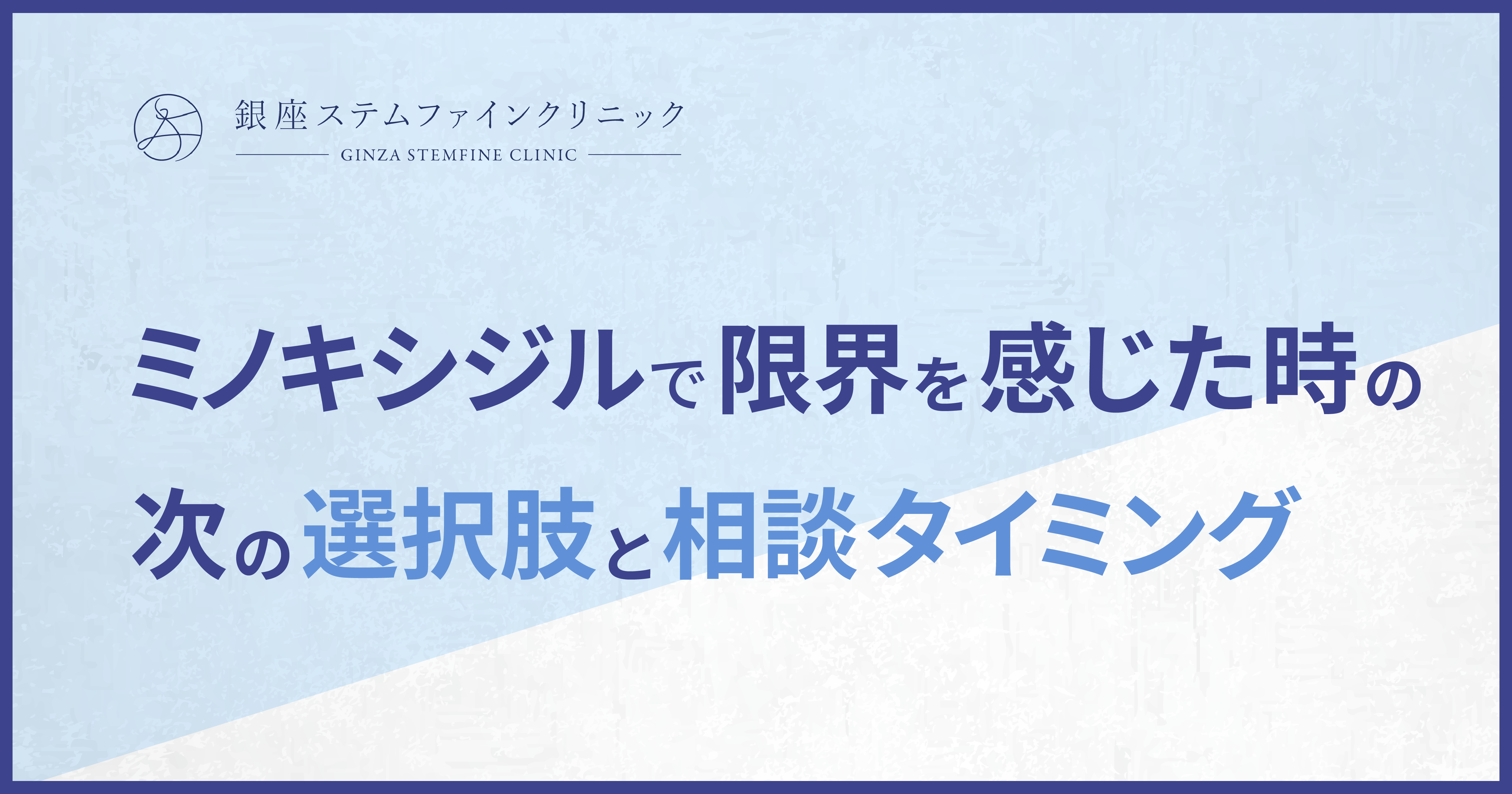 とくに半年〜1年続けても大きな変化を感じにくい場合や、生え際やボリュームが戻りにくい場合、副作用が気になって迷いが出てきた場合は、次のアプローチを考えてよい時期に入っています。