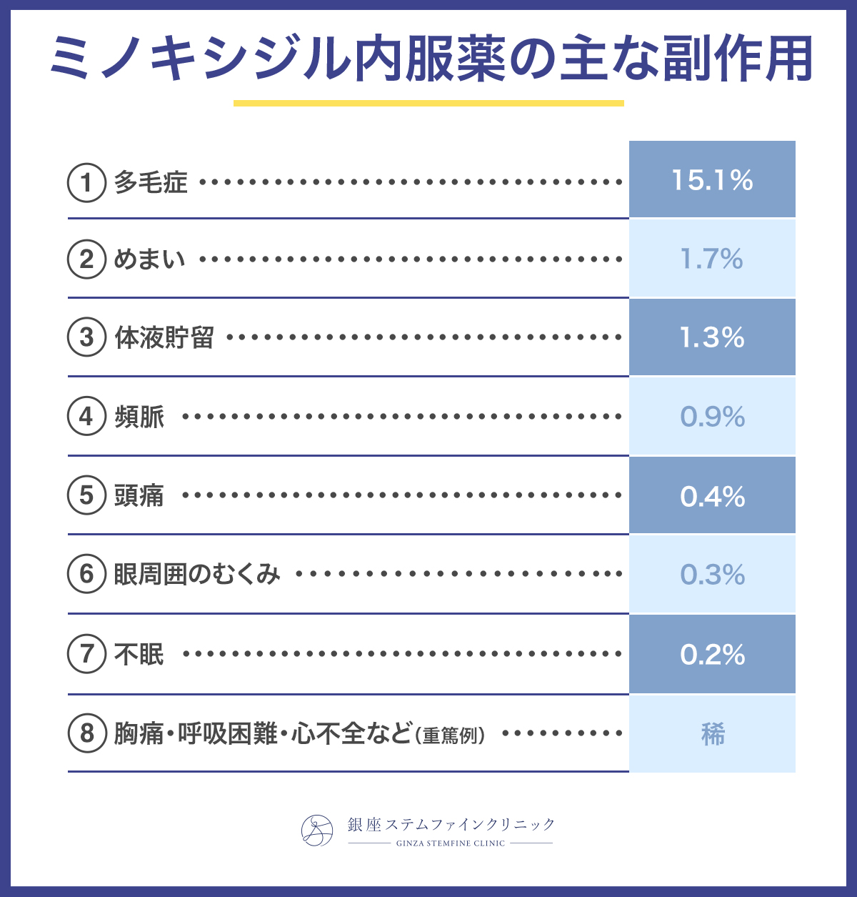 そのため、外用薬よりも変化を感じやすい人もいる一方で、むくみ・動悸・全身の多毛症などの副作用が出るケースもあります。