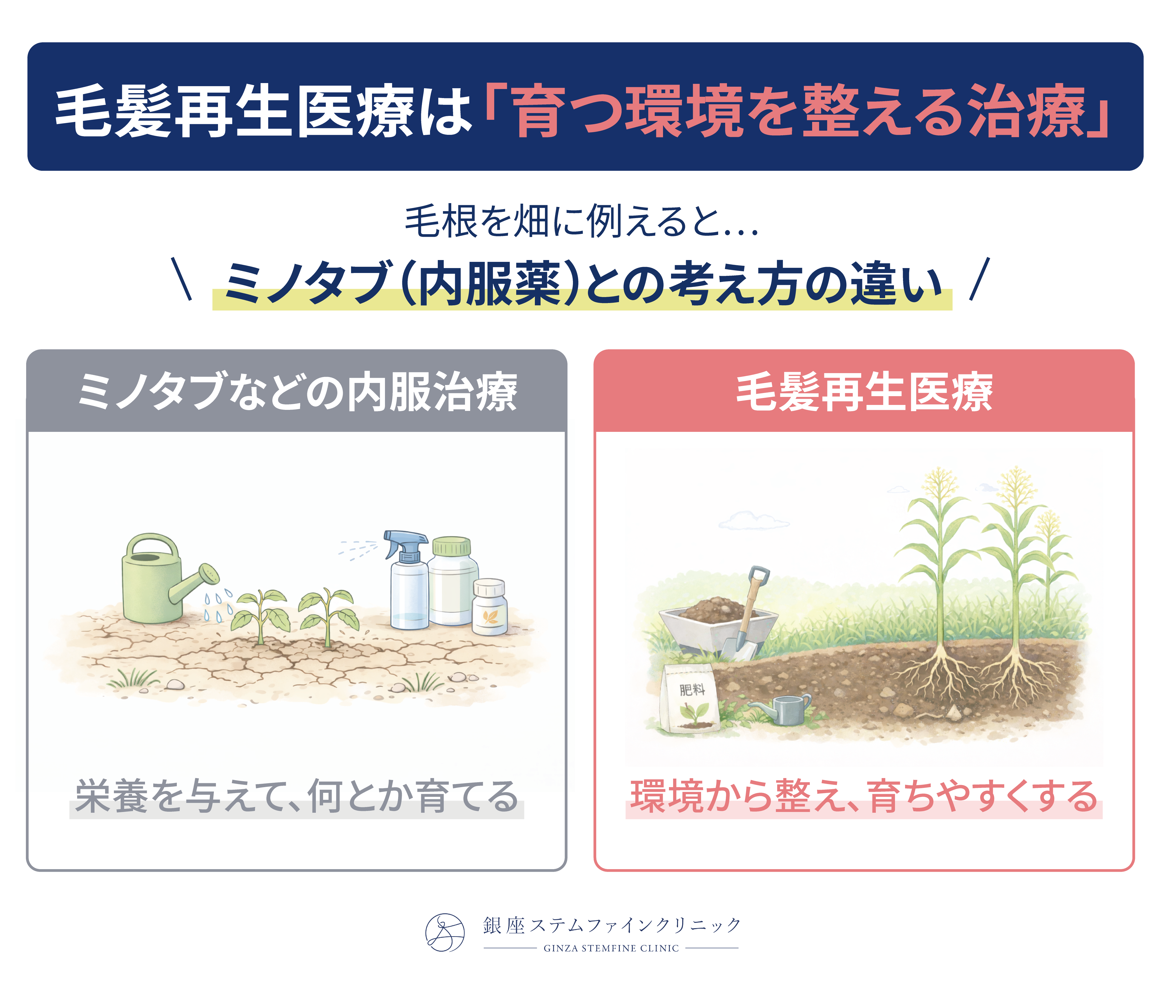現在では、内服薬に頼らず、毛根環境そのものにアプローチする毛髪再生医療といった選択肢もあります。
