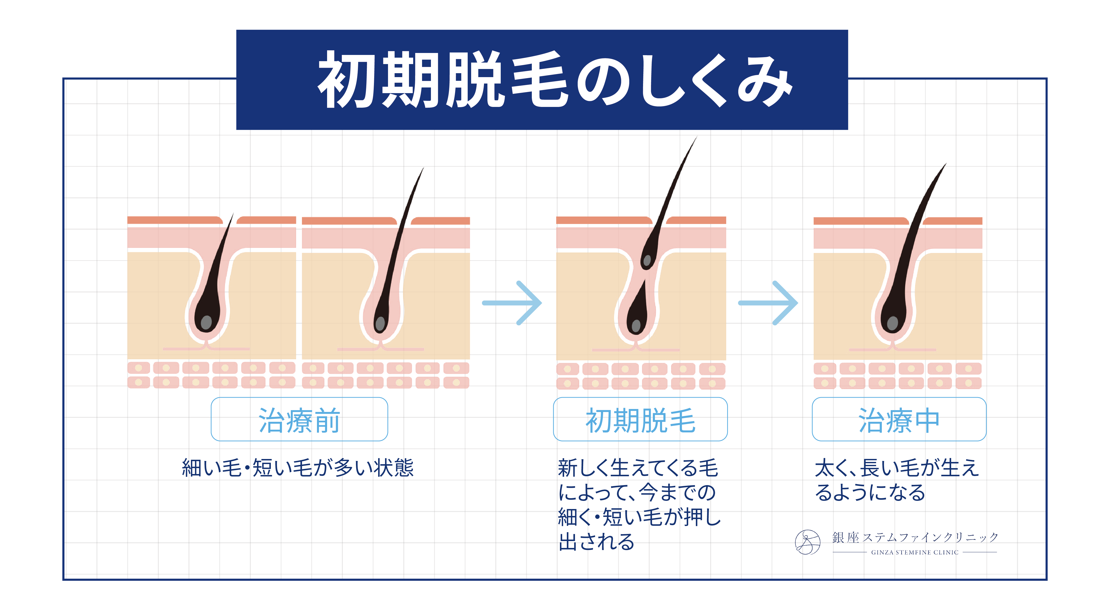 これは乱れた毛周期が整う過程で起こる反応と考えられており、必ずしも悪い兆候ではありません。