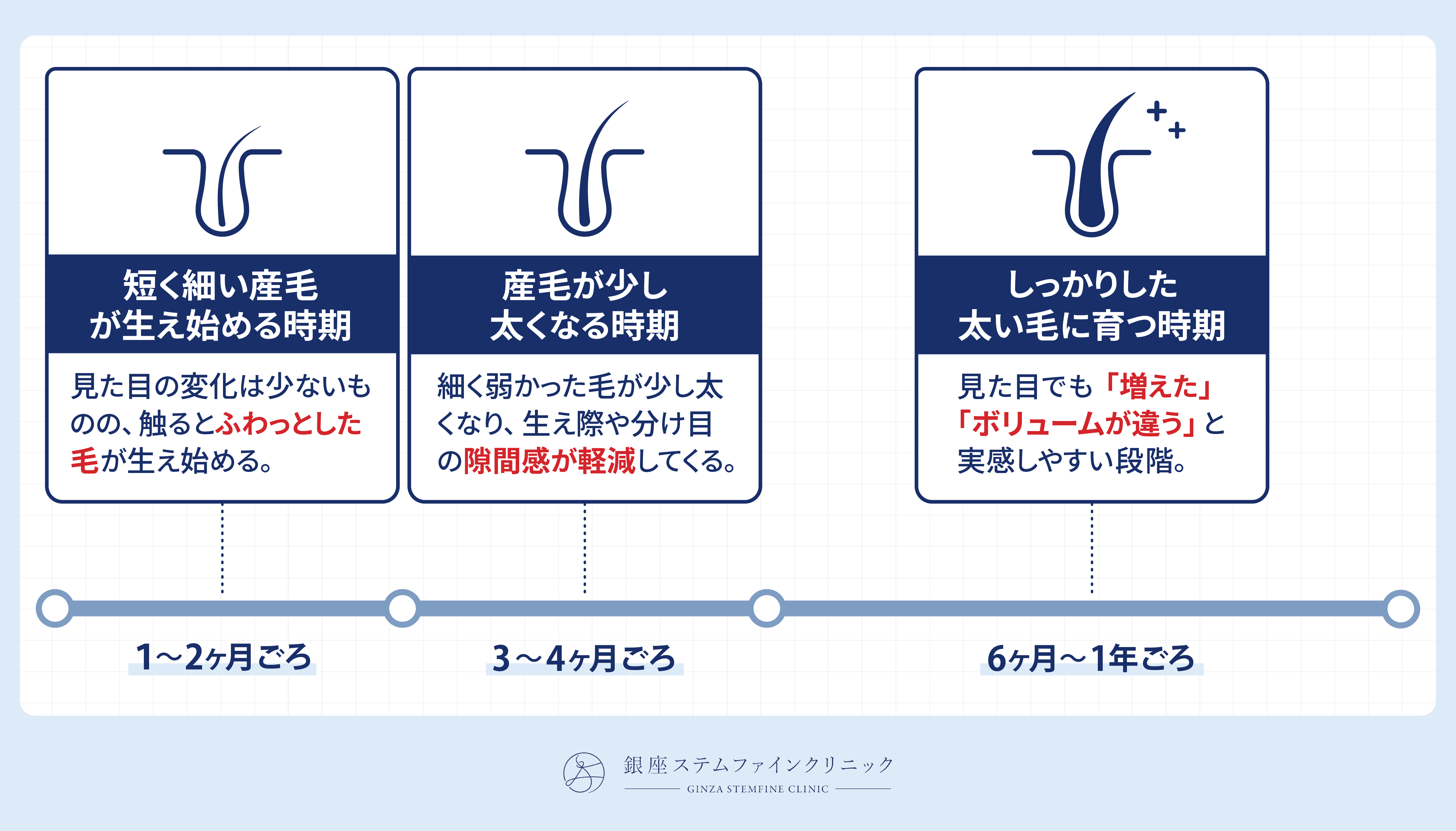 毛髪再生医療は、今ある髪を無理に太く見せる治療ではなく、弱っていた毛根の働きを引き出し、時間をかけて育てていく治療です。