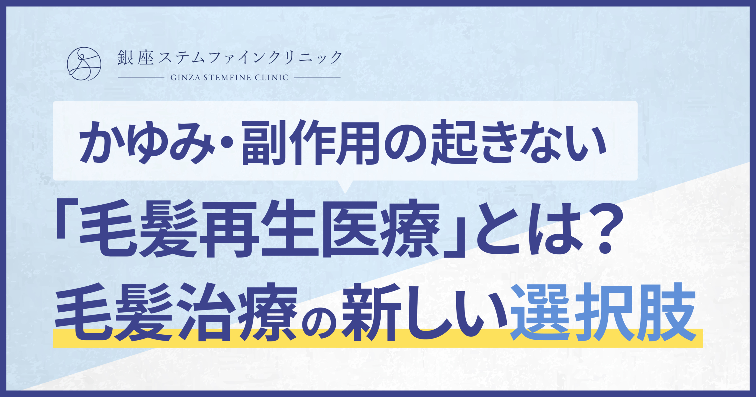 なかでも毛髪再生医療は、かゆみや副作用への不安から従来の治療を続けられなかった方にとって、新たな可能性を広げる治療の一つといえるでしょう。