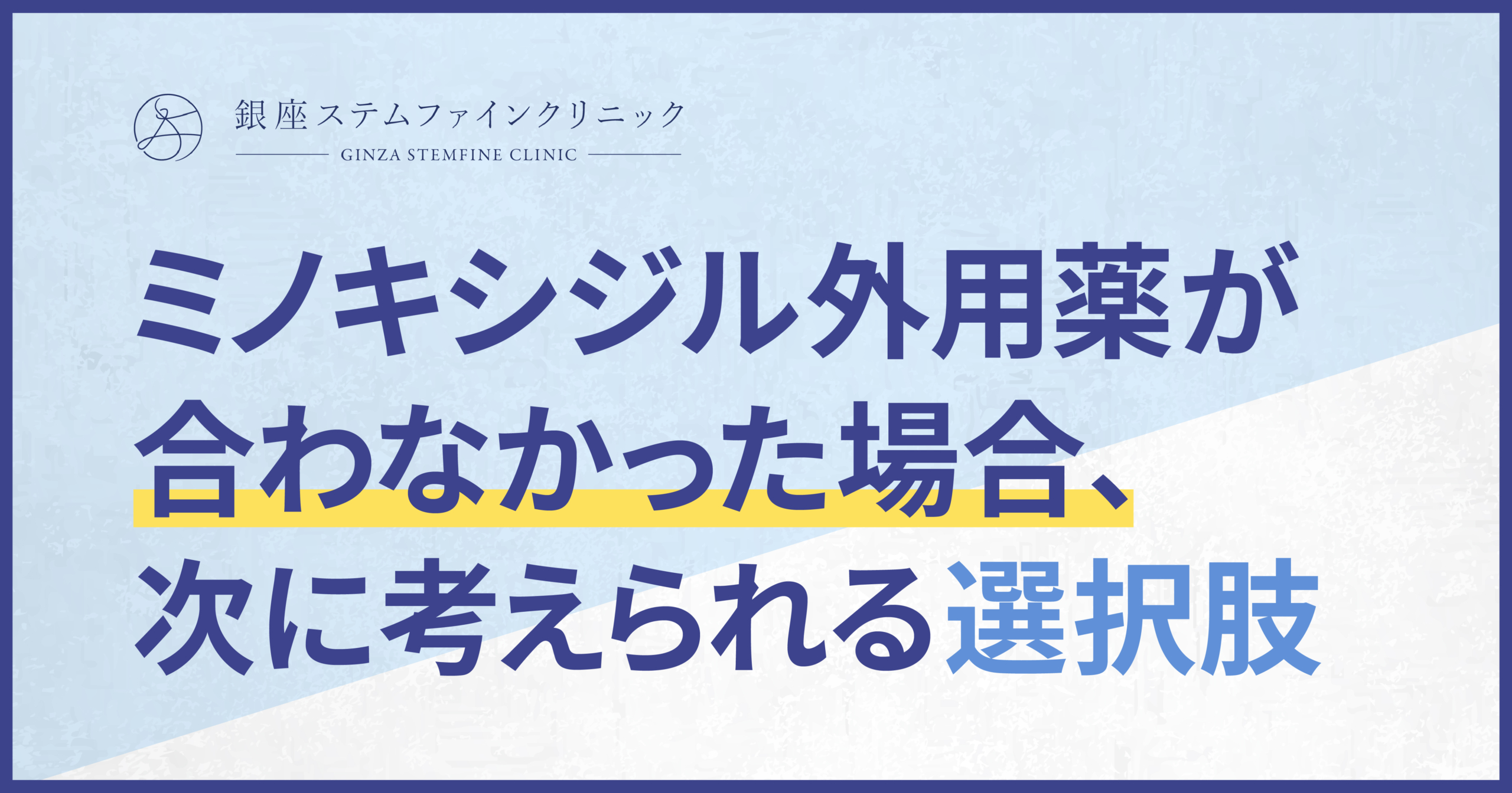 ミノキシジルが合わなかったからといって、治療をあきらめる必要はありません。