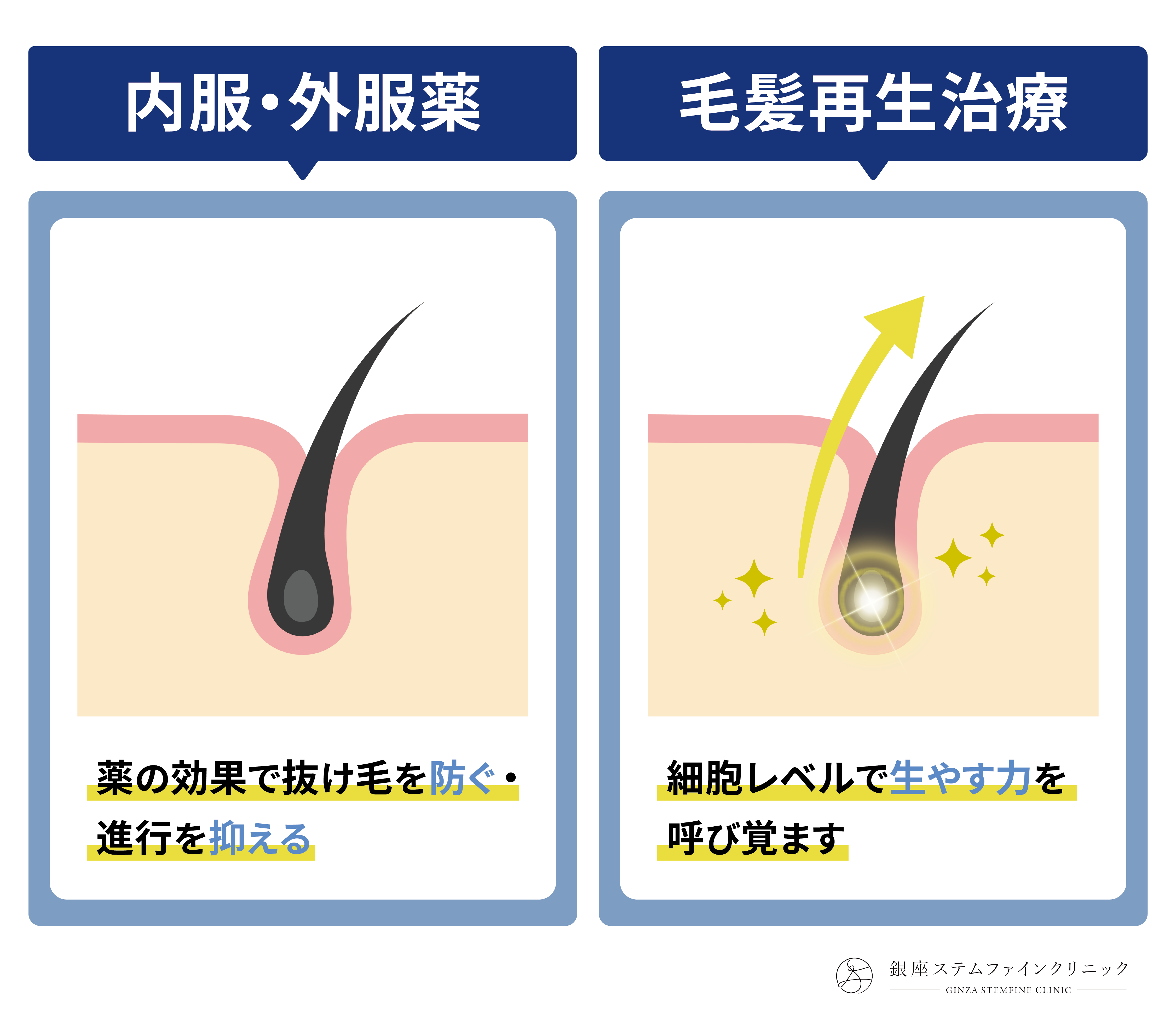 内服薬による治療と、毛髪再生医療は何が違うのですか?