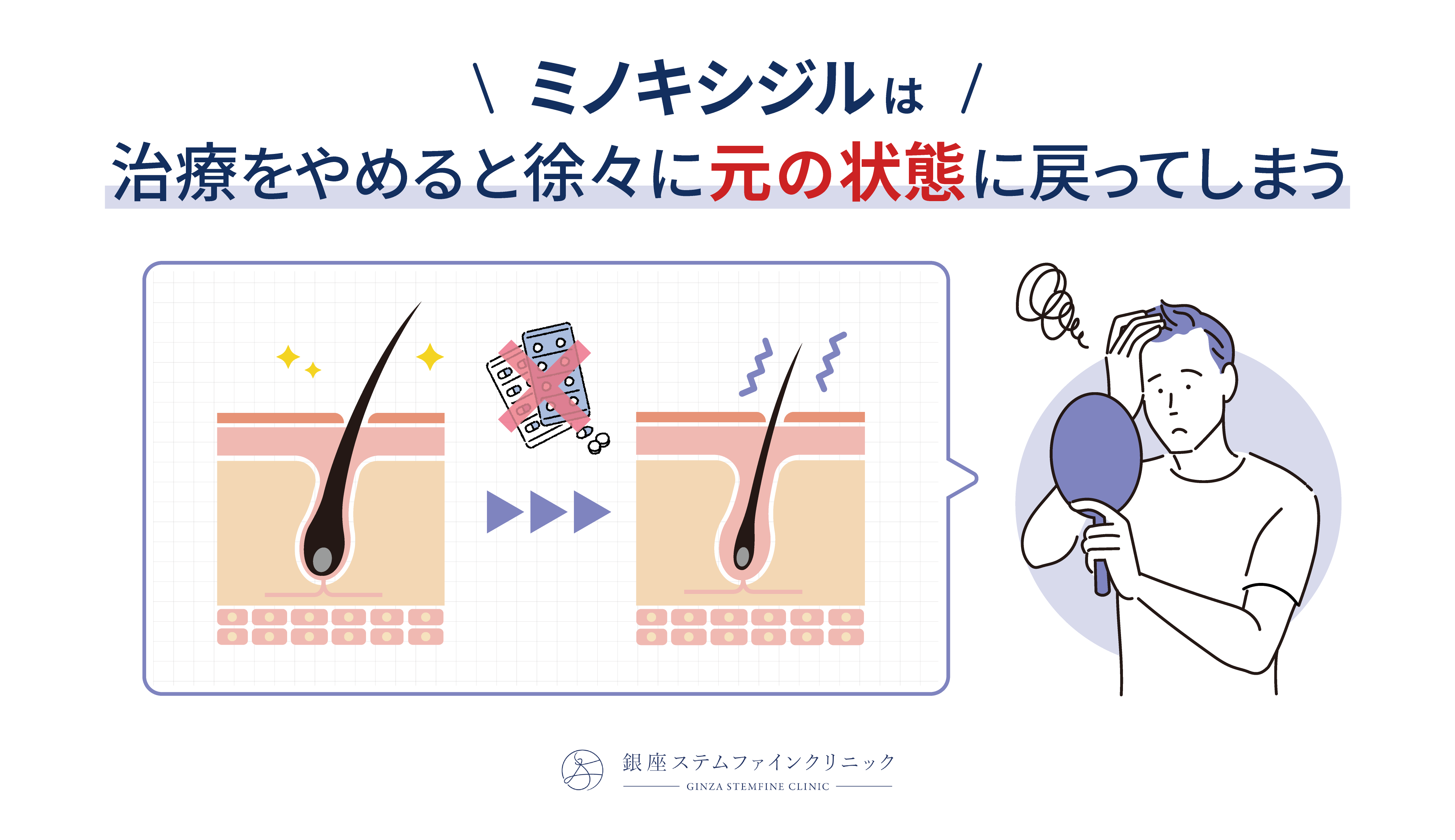 そのため、使用を中止すると、治療によって保たれていた毛髪は徐々に元の状態に戻るとされています3。