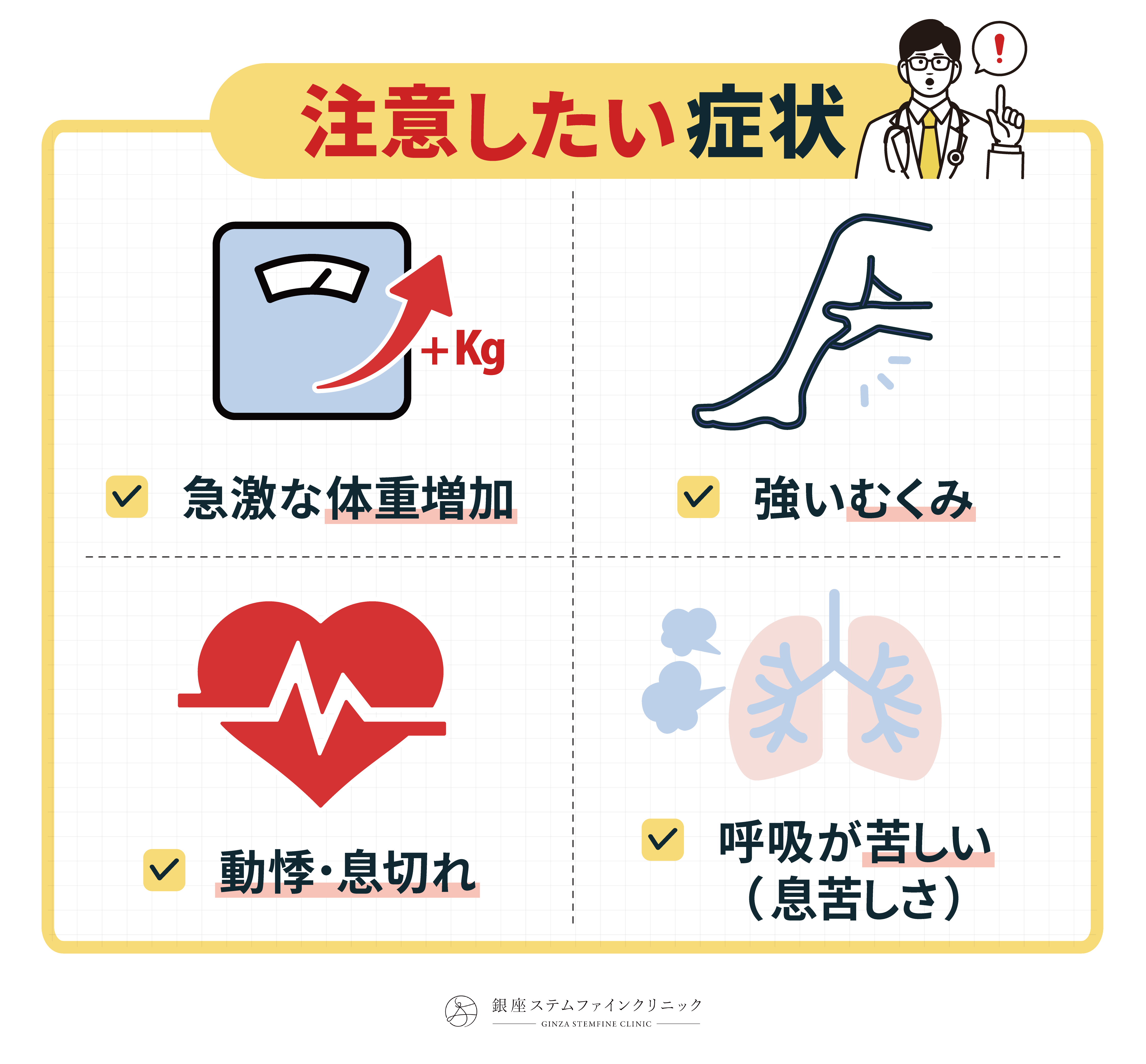 ミノキシジルを使用している中で体重の変化を感じた場合、次のような症状がある場合には注意が必要です。