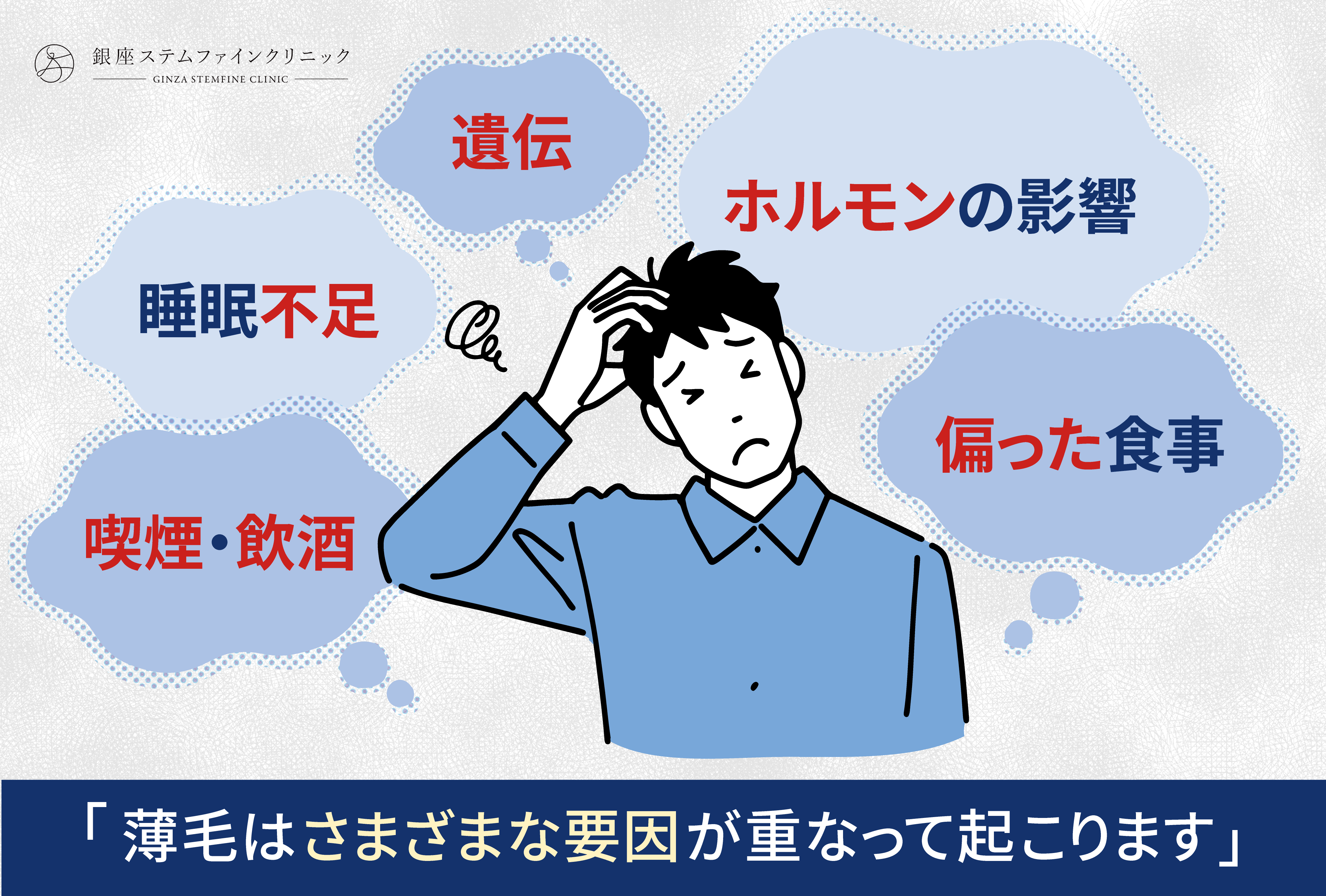 遺伝や男性ホルモンの影響だけでなく、生活習慣や頭皮環境など、複数の要因が関係することもあります。