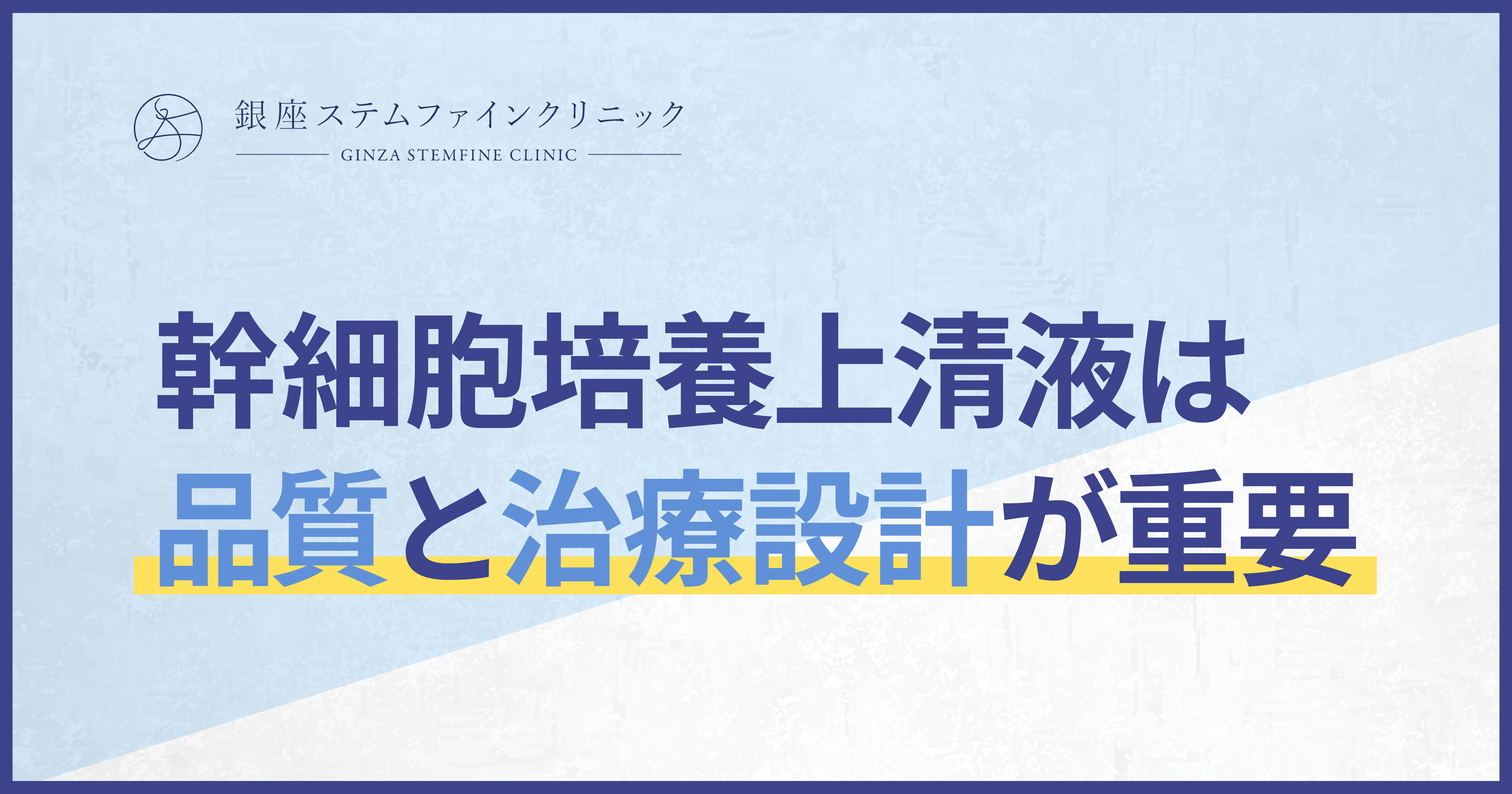 幹細胞培養上清液は、幹細胞そのものを入れる治療ではなく、幹細胞が分泌した成分を活用する治療ですが、医療機関によって製剤の由来や品質管理、治療設計には大きな差があります。