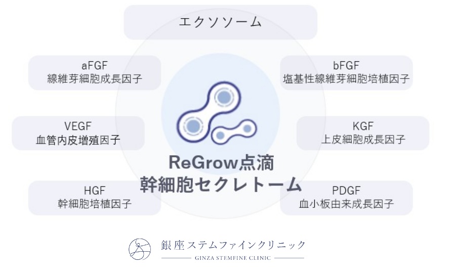 幹細胞培養上清液には、成長因子やサイトカインなどの成分が含まれています。
