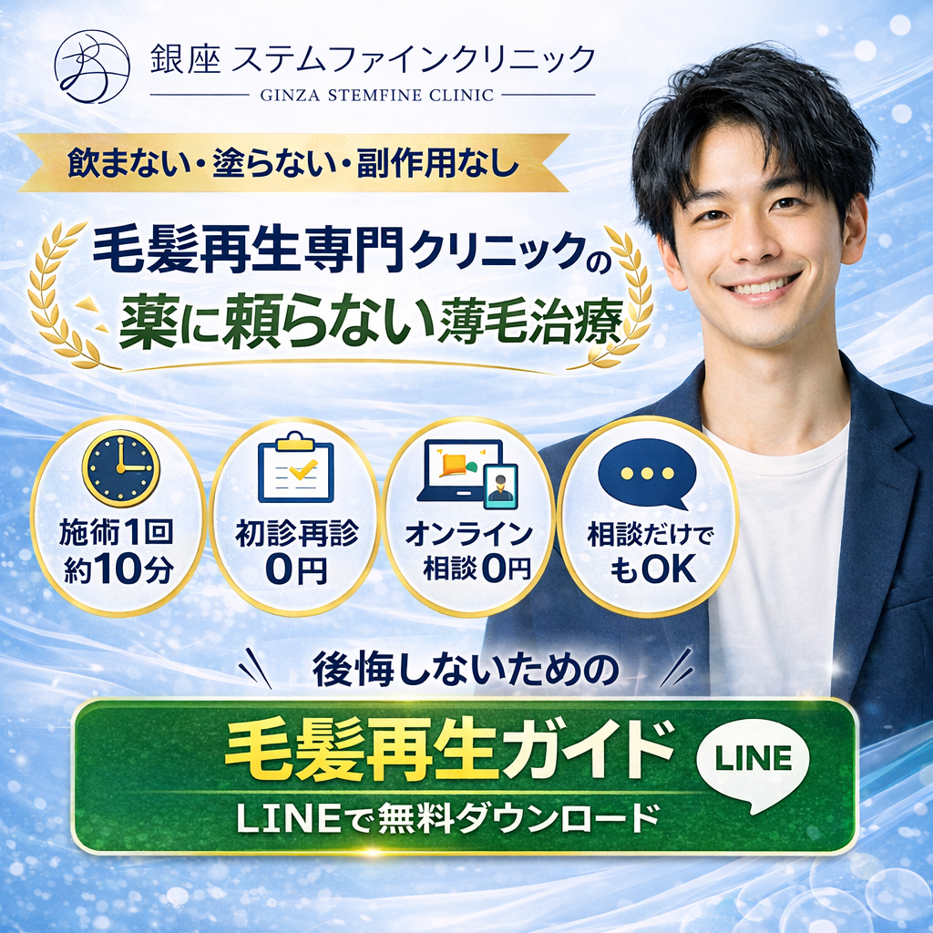 でも、「薬に頼るだけじゃ不安」「もっと根本的に改善したい」と感じているなら、毛髪再生医療という選択肢があることを、ぜひ知っておいてください。