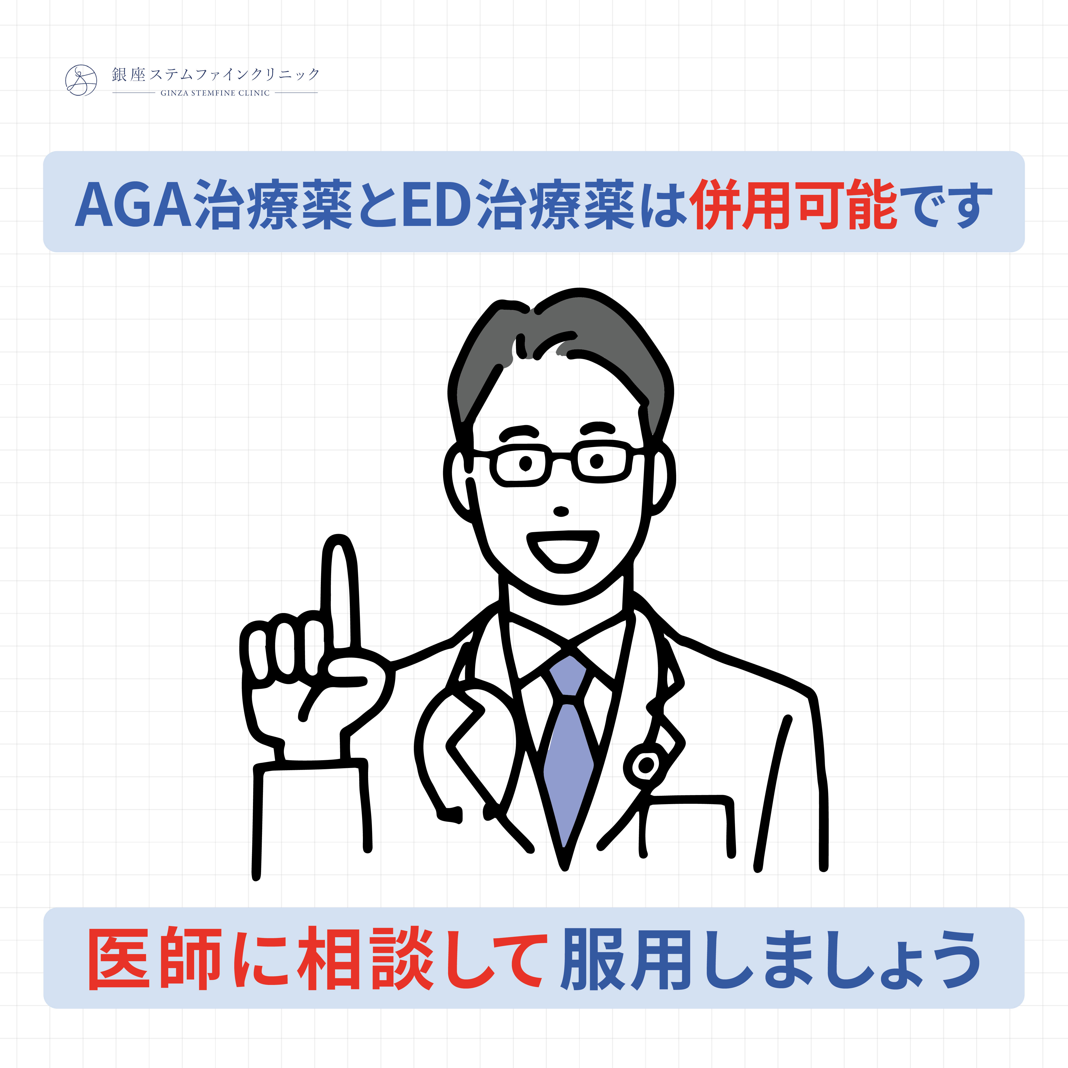 AGA治療中にEDが発生した場合、ED治療薬(バイアグラやシアリスなど)を併用することが可能です。