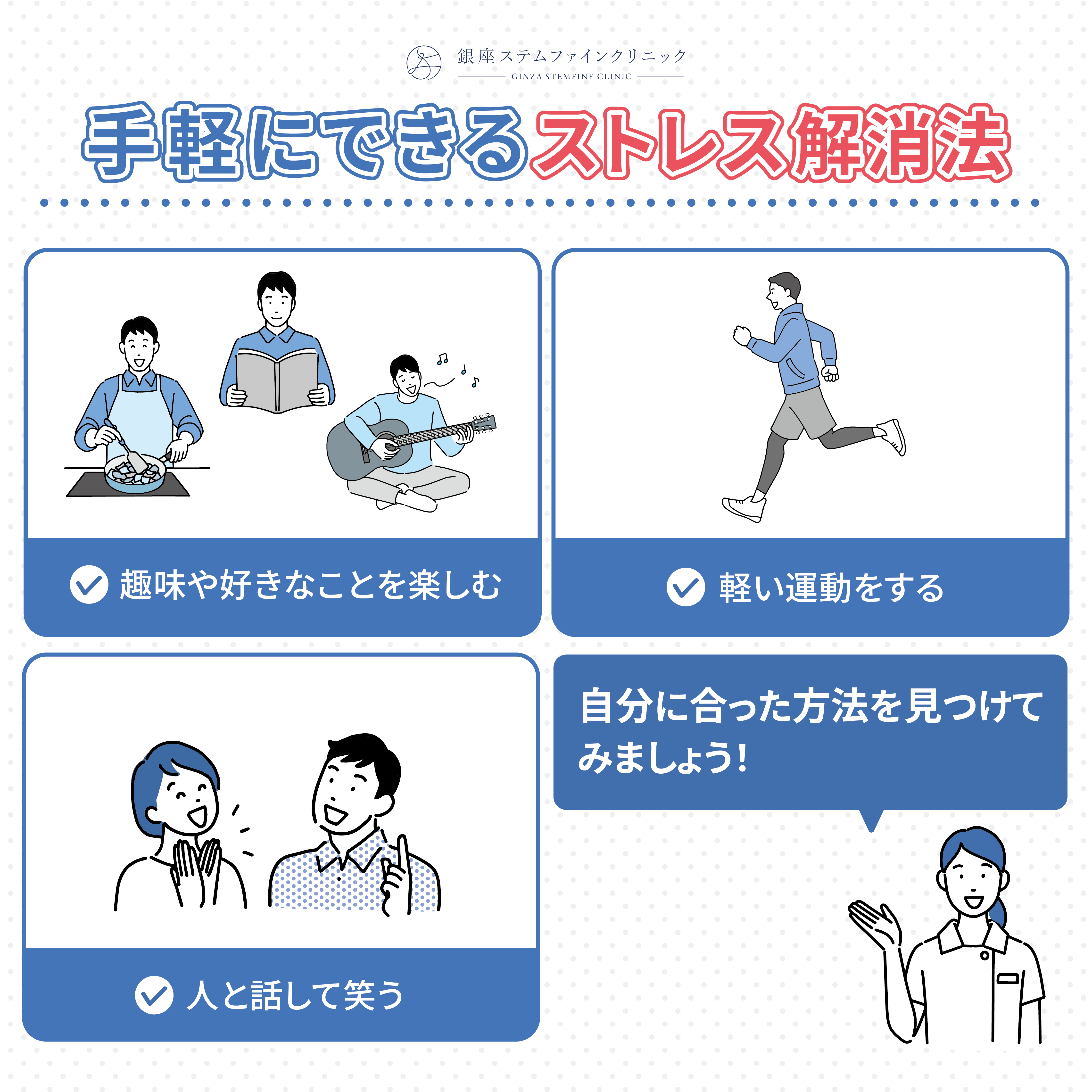 ストレスを軽減することで、ホルモンバランスを整え、薄毛や性機能障害の予防につながります。