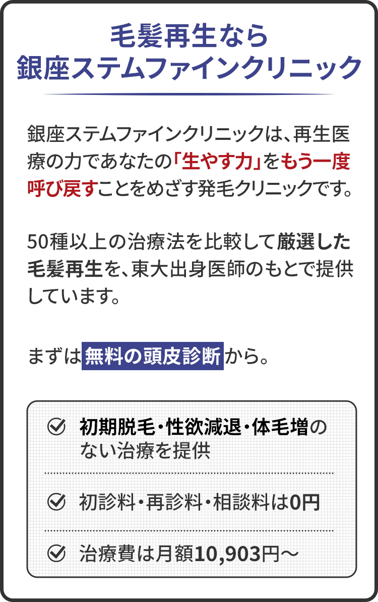 銀座ステムファインクリニックの体毛が増えない薄毛治療
