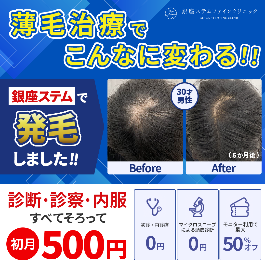 一方で、「薬は使いたくない」「副作用が不安」という方には、頭皮に直接有効成分を届けるメソセラピー(注入治療)が選ばれています。