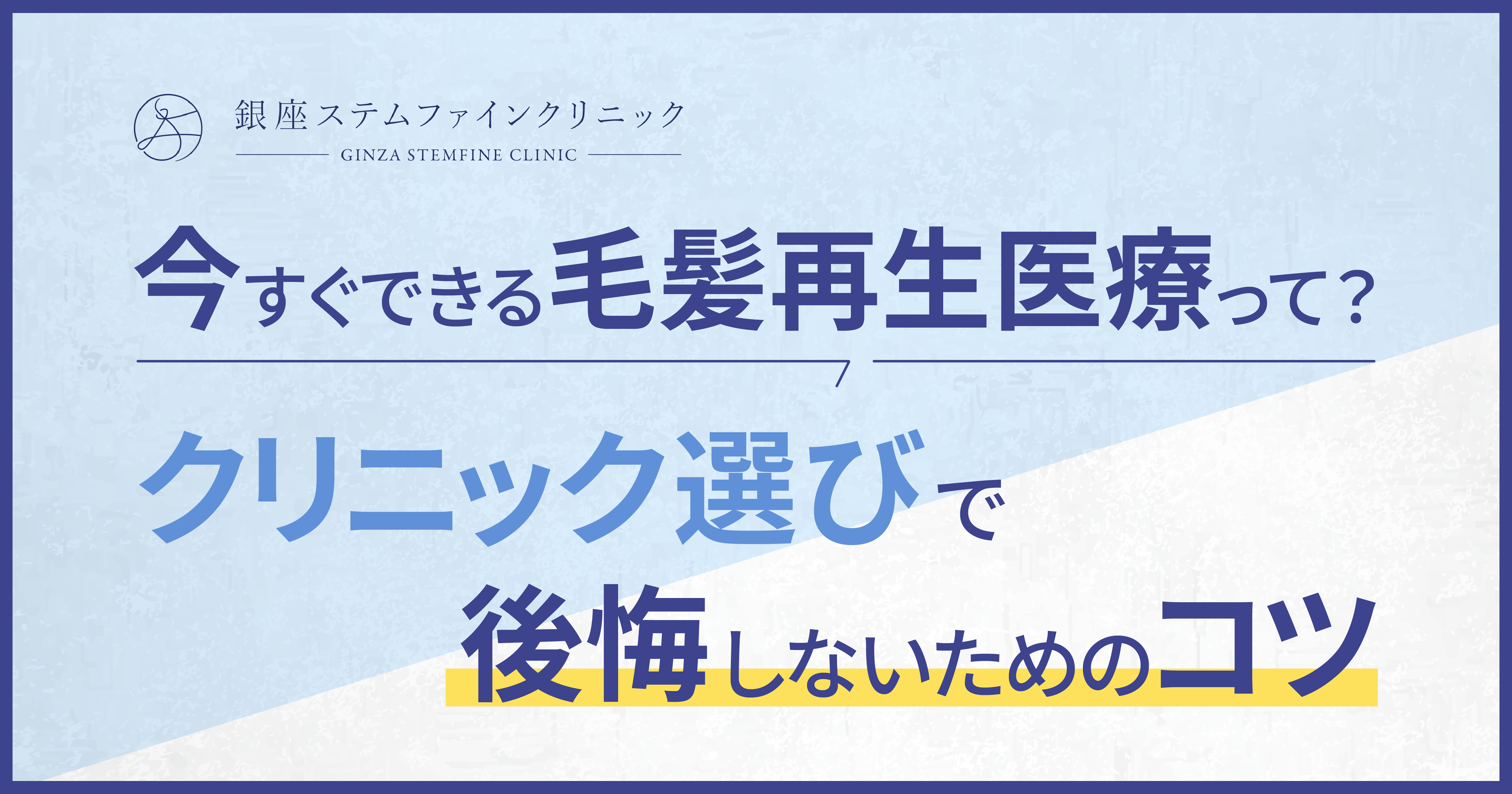 毛髪の再生医療を受けられるクリニックも増えてきたため、「どこで治療を受けても同じでしょ?」と思っているかもしれませんが、