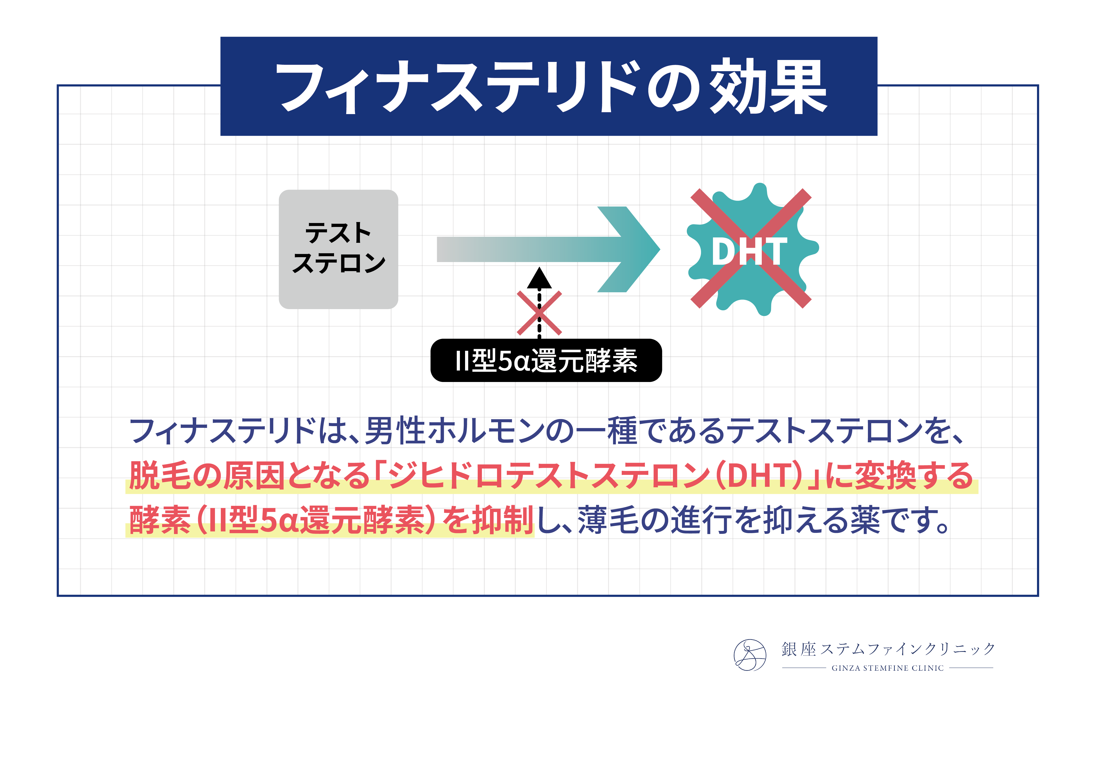 フィナステリドとデュタステリドは、いずれも「DHT(ジヒドロテストステロン)」という脱毛の原因となる男性ホルモンを作り出す酵素の働きを抑える薬です。