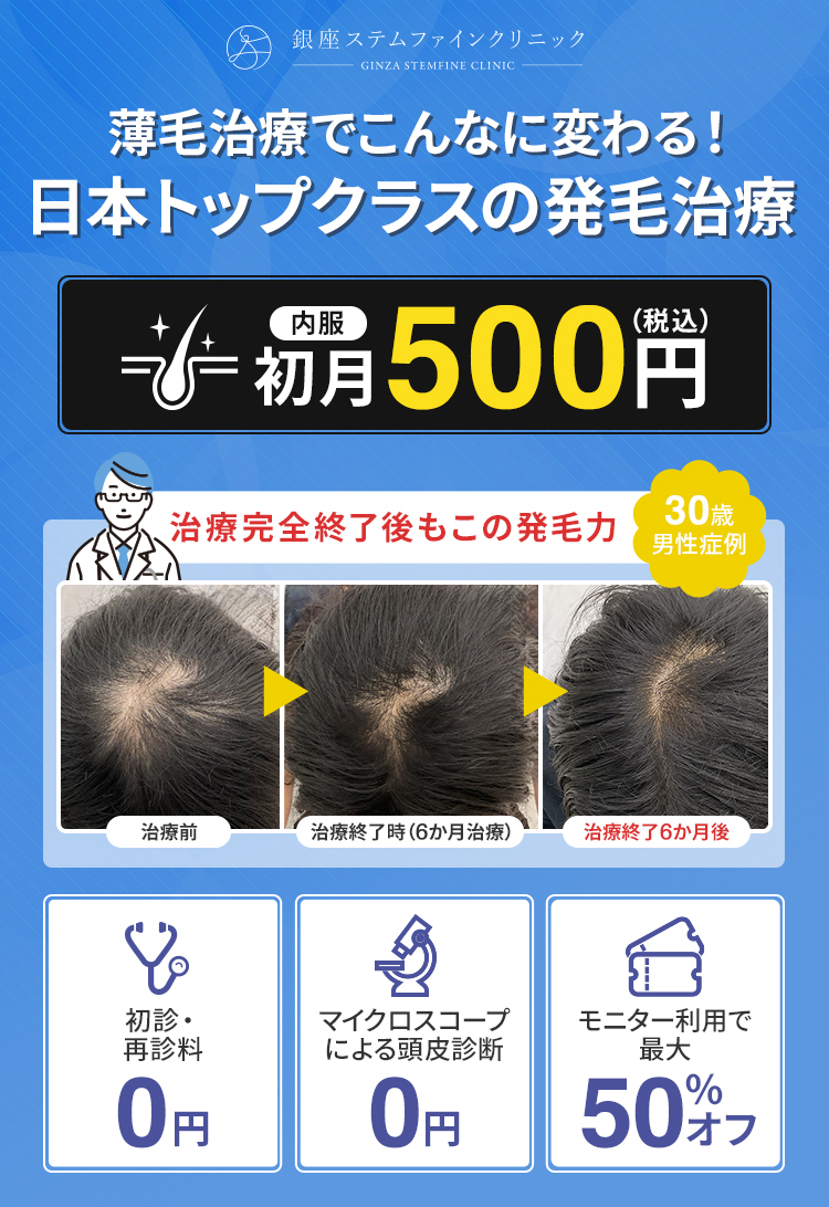 個人差はありますが、3〜6か月ほどで多くの方が発毛やボリュームの変化を実感されています。