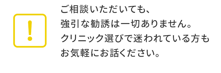 治療を受けるかどうかは、診察やカウンセリングを受けた後にじっくりご検討ください。