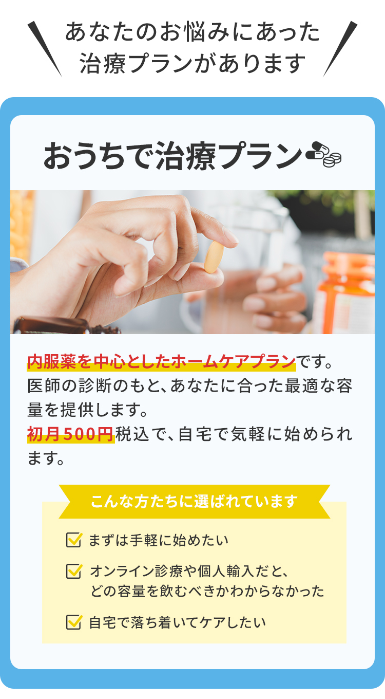 一方で、より確実な効果を得たい場合や進行抑制を重視する場合は、内服との併用を推奨しております。