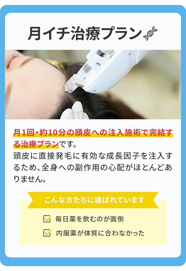 当院では、注入治療のみでも発毛をサポートするプランを提供しております。