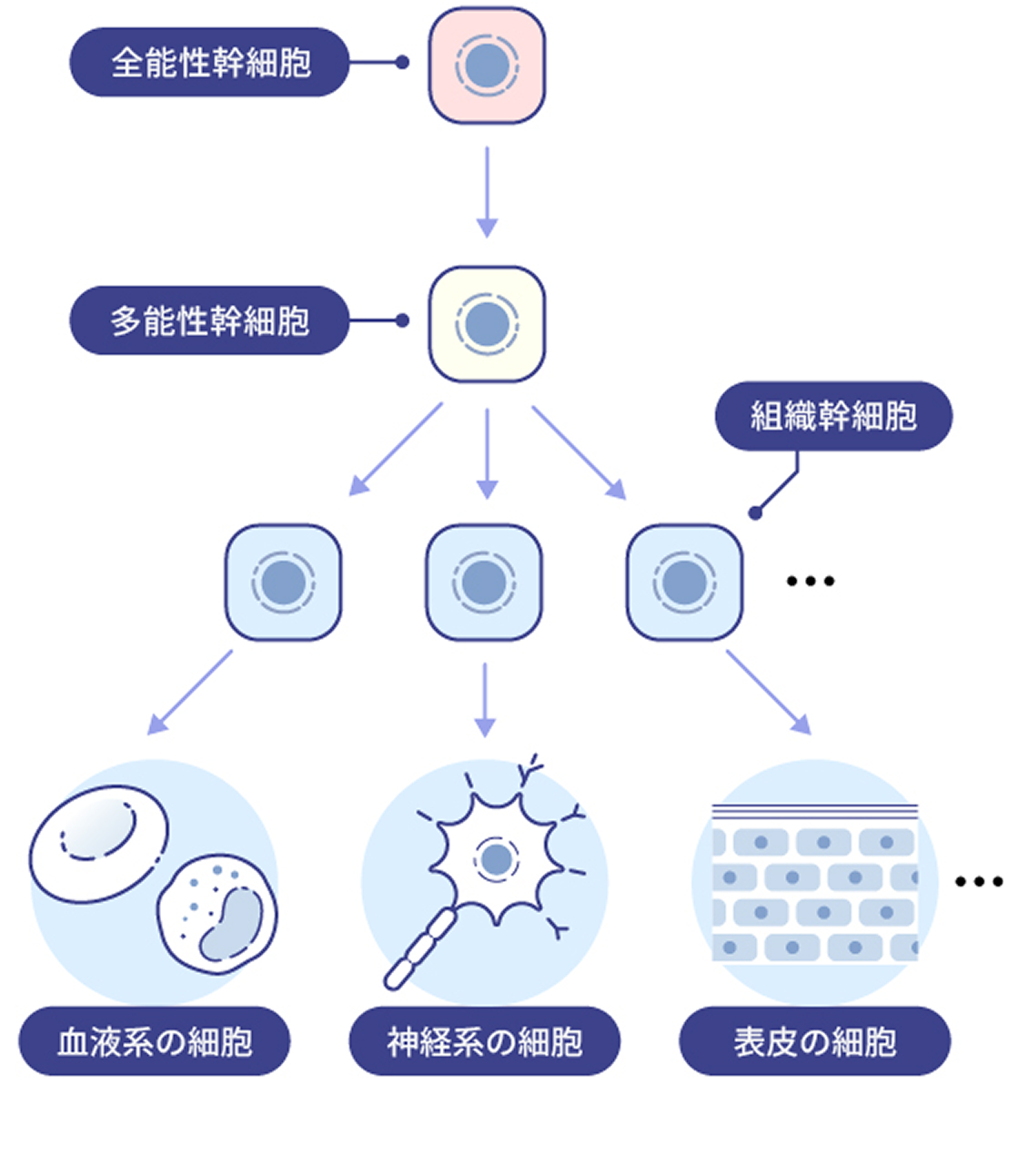 このように、私たちの体には失われた細胞を作り出す力が備わっており、その役割を担うのが「幹細胞」です。
